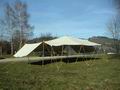 Sa taille 8 m d'ouverture sur 6 m de profondeur, avec trois battants de tissus